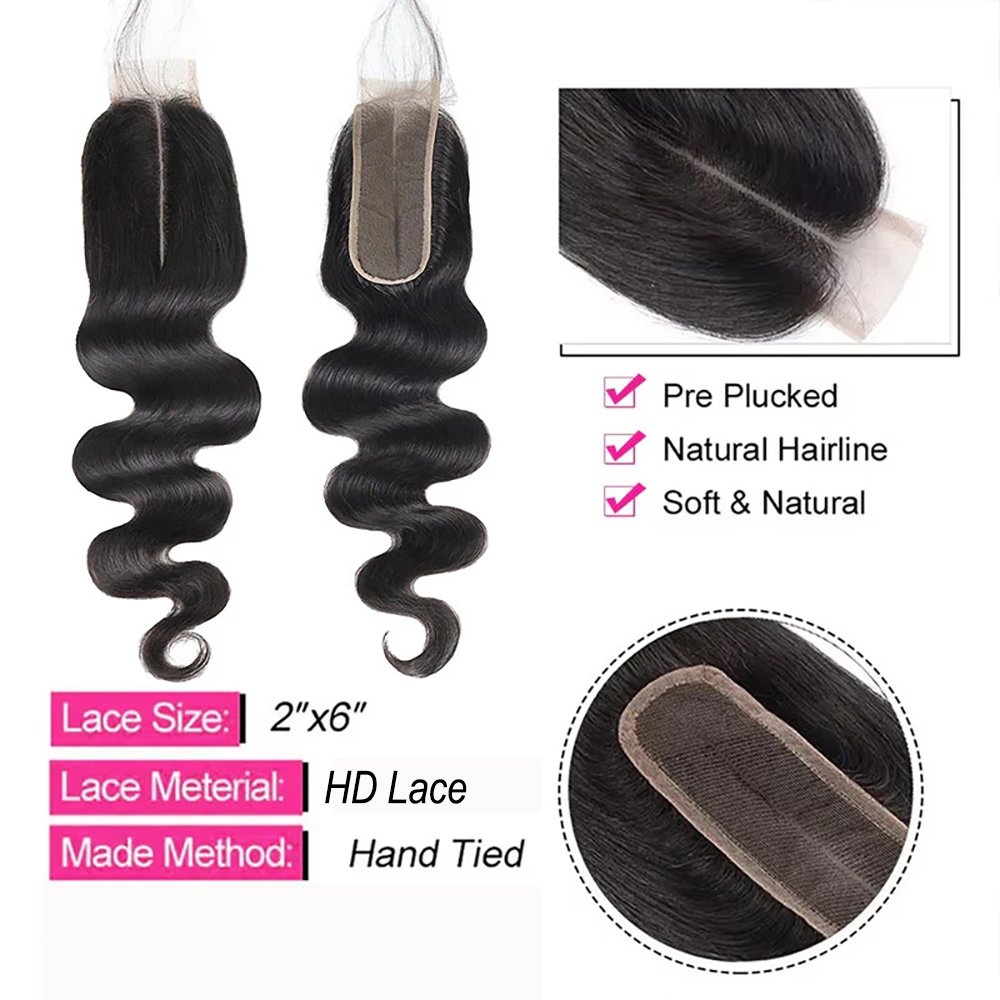 10A Hair Bundle with HD 2*6 Lace Closure Body Wave