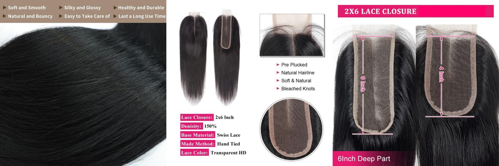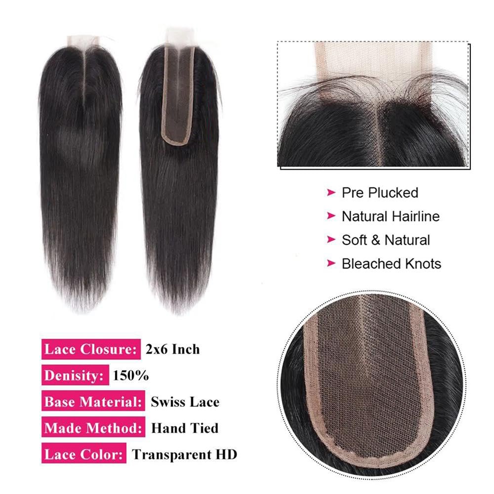 10A Hair Bundle with HD 2*6 Lace Closure straight