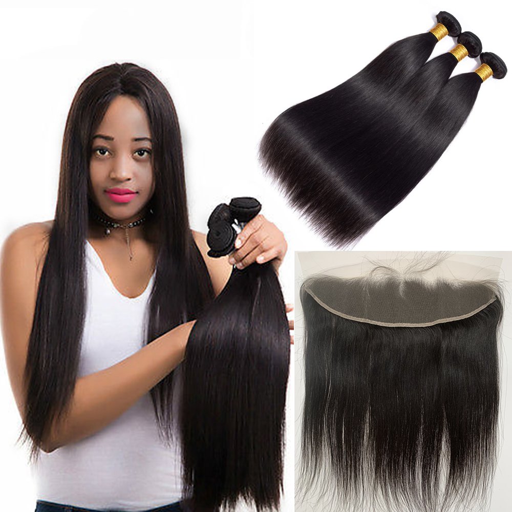 10A Hair Bundle with Transparent 13*4 Lace Frontal Straight