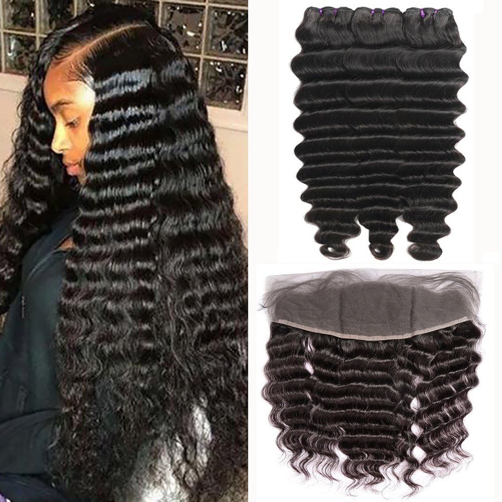 12A Hair Bundle with Transparent 13*4 Lace Frontal Deep Wave