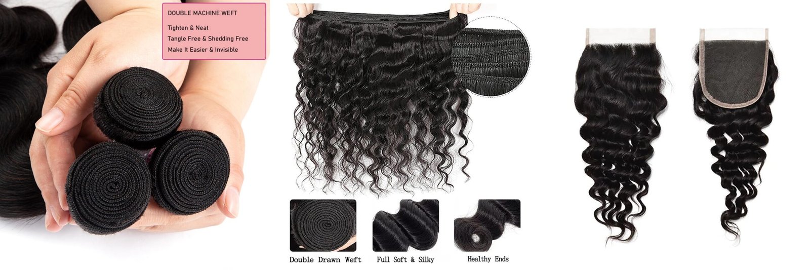 11A Hair Bundle with Transparent 4*4 Lace Closure Deep Wave