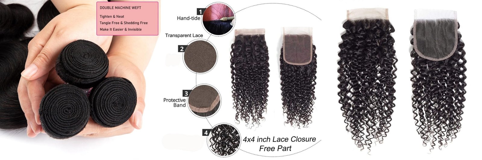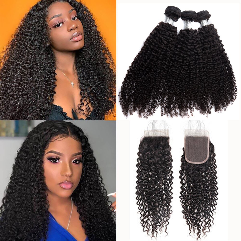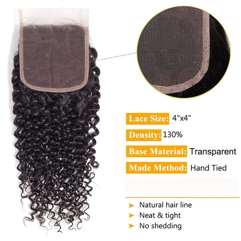 12A Hair Bundle with Transparent 4*4 Lace Closure Kinky Curly