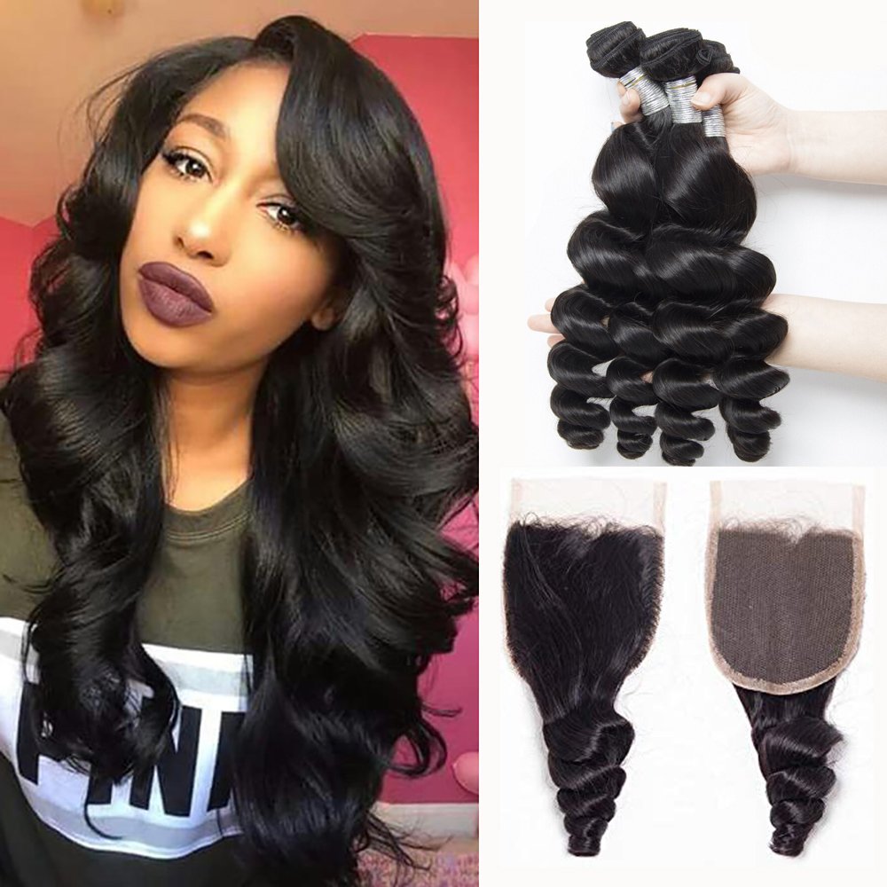 12A Hair Bundle with Transparent 4*4 Lace Closure Loose Wave