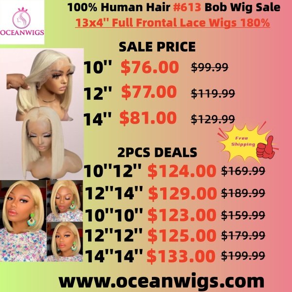2pcs #613 13*4 Full Frontal Bob Wig Deal Transparent Lace 180%