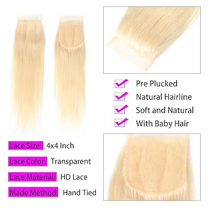 Product Name:4×4 Transparent Lace Closure Straight 613 blonde Hair Closure