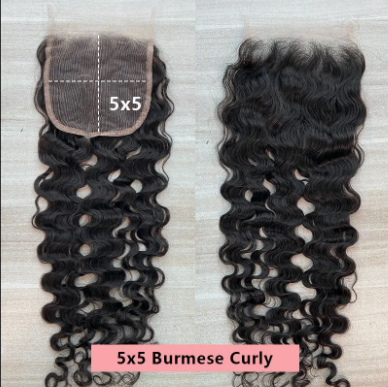 HD 5x5Inch Lace Closure Burmese Curly-Can be dyed to any light color you like!