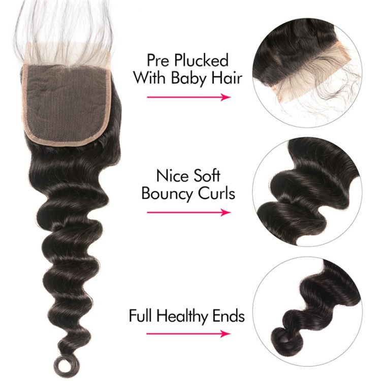 HD 5X5inch Lace Closure Loose Deep Wave Black Human Hair