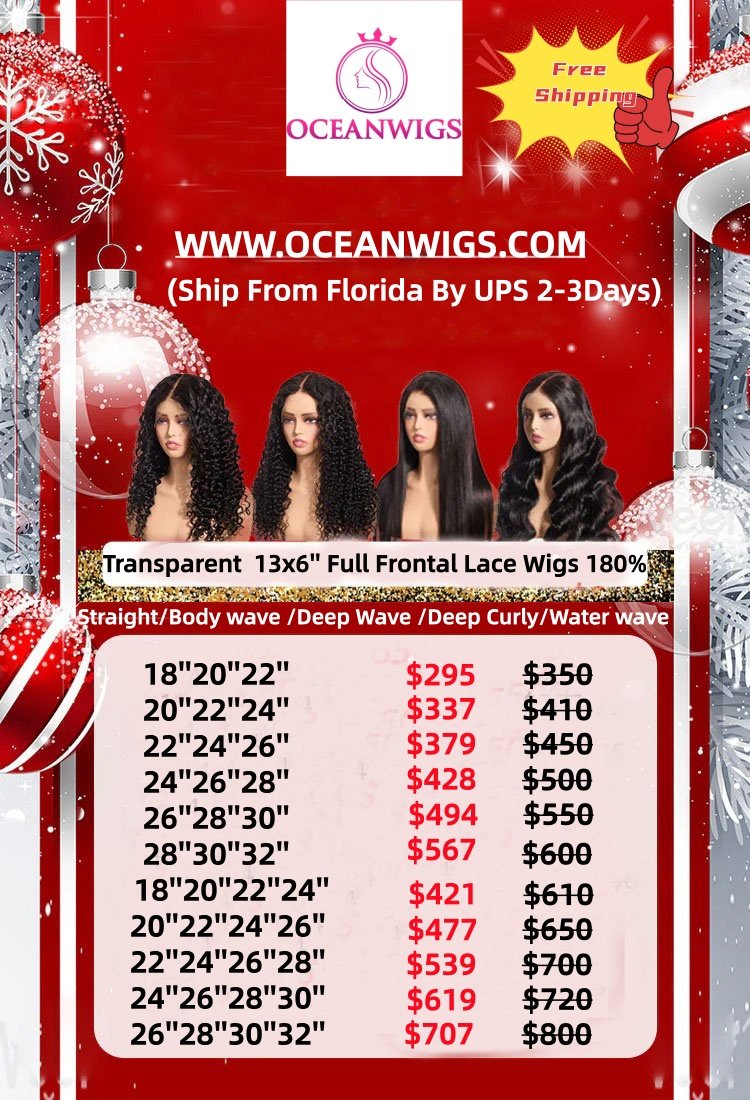Transparent 13*6inch Full Frontal Wig 180% Natural Color Straight /Body wave /Deep curly/Deep wave/Water wave