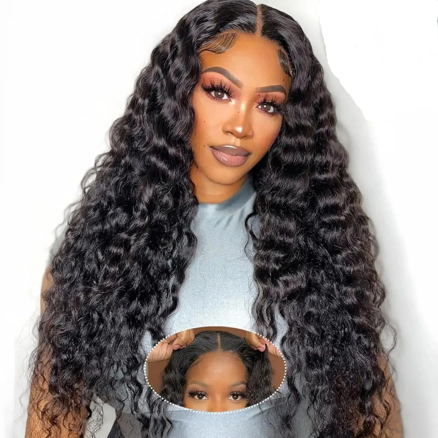 Transparent Lace 13×4″ Full Frontal Wigs Deep Wave Longer 40“ 180% Natural Color