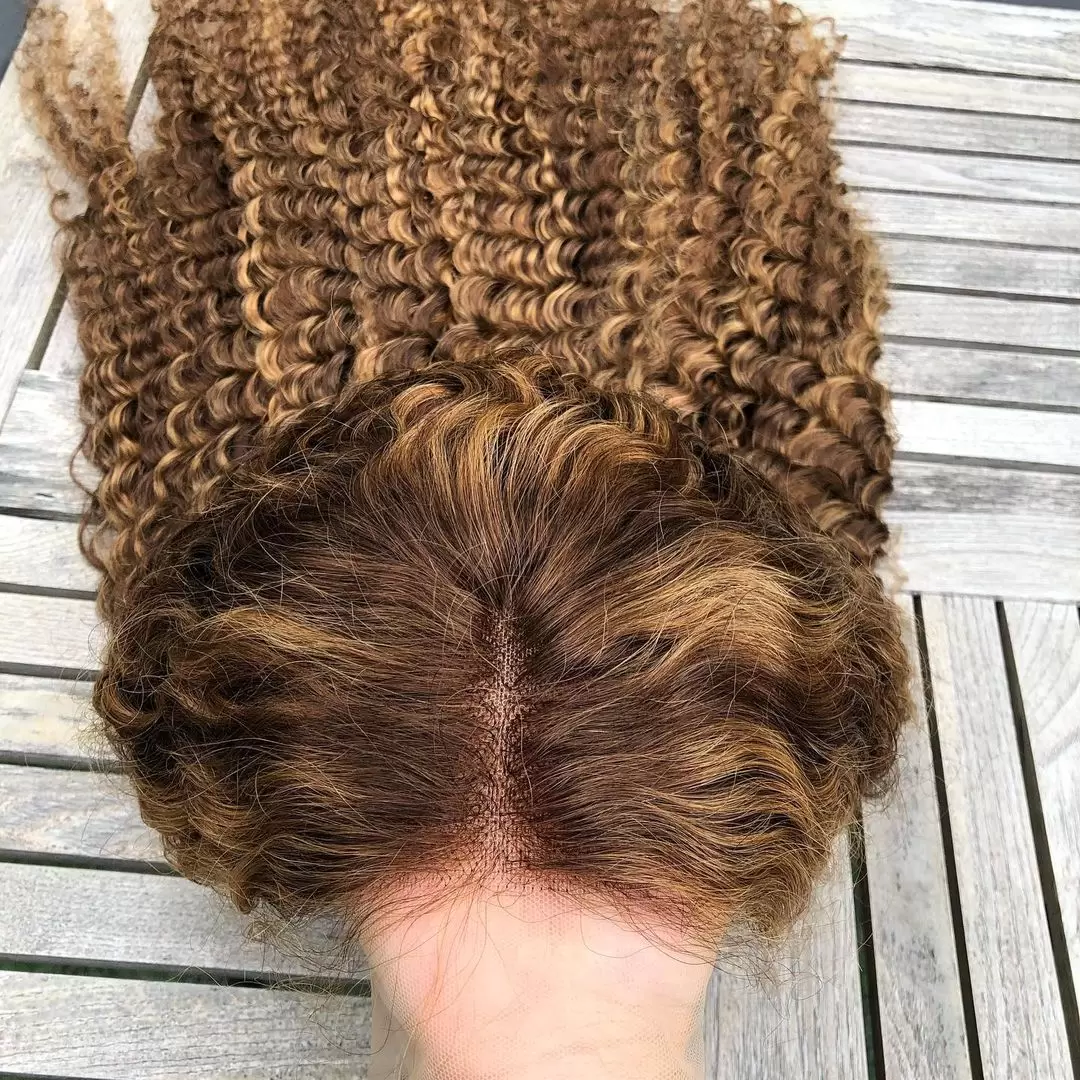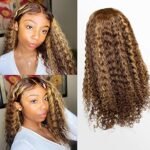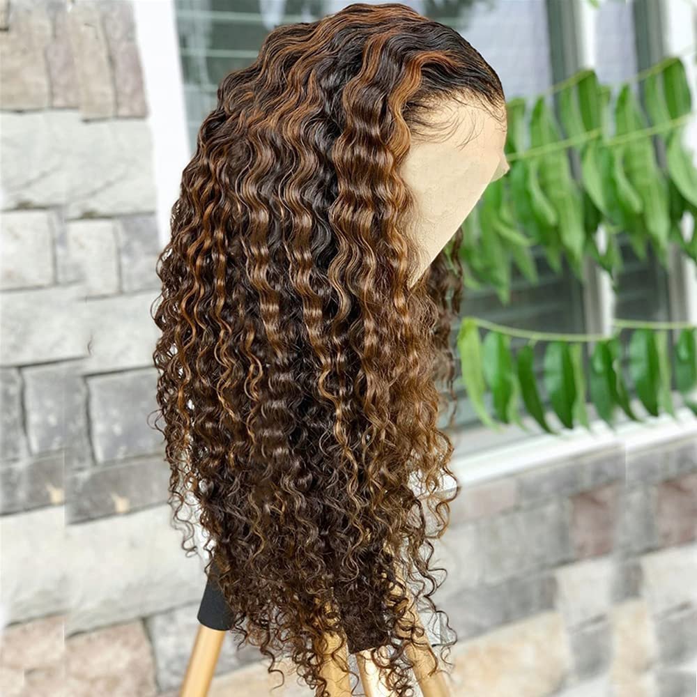 Transparent Lace 13×4″ Full Frontal Wigs Deep Curly 180% P4/27 Color